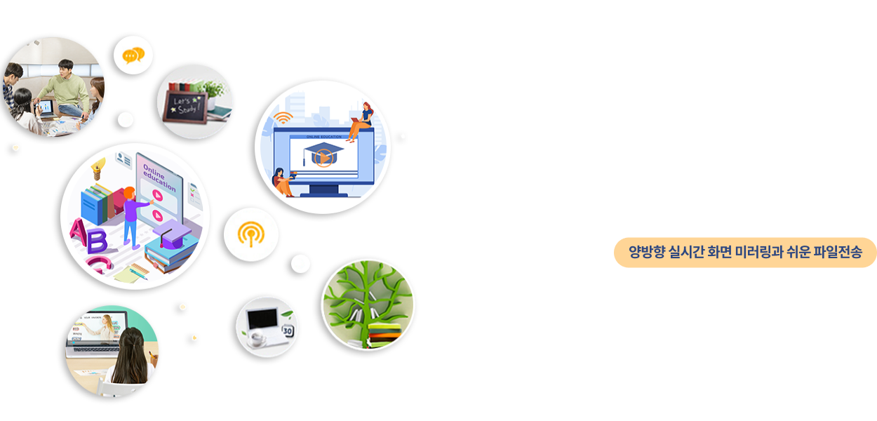 스마트수업에 최적화 되어 있어 각각의 기기에서 파일전송 및 판서 기능을 이용하여 수업시간에 선생님과 양방향 수업을 진행 할 수 있습니다.